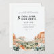 This wedding invitation features a painting of the red rocks in Zion National Park landscape view, vintage style.