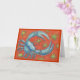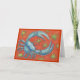 Cancer, the crab, walks on a beach covered with stars. Water sign, June 22 - July 23 (there may be a variation in the dates). Greetings card with an orange, blue and yellow customizable design for you to personalise with your own text, images and ideas. An original coloured pencil and metallic ink drawing by Jess Perry.