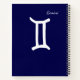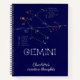 Zodiac Constellation Gemini or twins. The colour of the stars is roughly real. Star and space objects' names. Gemini is one of the zodiac constellations, the sun transits it along the Ecliptic line between May 21 and June 20 or so. In Greek classical mythology, the twins - Castor and Pollux shared the same mother, Leda, but they had different fathers. Pollux's father was the god, Zeus, making Pollux immortal while Castor was mortal. Their sister was Helen of Troy, so they fought in the Trojan War. When the mortal Castor was killed, Pollux asked Zeus to let him share his own immortality with his twin to keep them together, and they were transformed into the constellation Gemini. Unique, one-of-a-kind, beautiful, and funny spiral notebook for anyone to write down valuable insights. Customizable. You can change images, and you can change or delete template texts on the front and on the back. Do not forget to use the "Personalize", or "Edit Design" (as the case may be) button. It will transfer you to the "Designer Tool" area where you can use the "FILL/FIT" option to ADJUST THE DESIGN TO THE SIZE AND SHAPE of the product, to rotate it, to change the position, and colour of the background, etc. Just be creative, enjoy, and be happy.