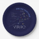 Zodiac Constellation Virgo or virgin. The colours of the stars are roughly real. Stars' and space objects' names. Virgo, Virgin, is the second-largest constellation in the sky. It belongs to the Zodiac family of constellations. The Sun transits the area along the Ecliptic line between August 23 and September 22. There are 35 verified exoplanets orbiting 29 stars in Virgo. Maybe we shall say Hello! to their inhabitants every time, we look at the constellation. Greeks associated Virgo with the goddess of wheat and agriculture, Demeter. Sometimes Virgo is identified as the virgin goddess Iustitia, who holds the scales of justice in her hand (the constellation Libra). Unique, one-of-a-kind, festive paper plates for anyone. Customizable. You can change or delete the template text FOLLOW YOUR STAR. You can transfer this design to a variety of other products. Just choose the product from the scrollable option "Transfer design to a product". Do not forget to use the "Personalize", or "Edit design" button (as the case may be), or the blue link "Details" --> "Click to customize further" --> "FILL/FIT" to ADJUST THE DESIGN TO THE SIZE AND SHAPE of the product, to rotate it, to change the position, type, colour of the font, or to add your own text from the scratch. You can also change the colour of the plate (the background colour). Just be creative, customize one, buy, enjoy, and be happy.