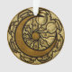 This design shows an Art Nouveau styled new moon, or a crescent moon, surrounded by poppy seed pods. The image is in golds and bronzes, and the whole image is in the shape of a circle. Very graphic, and very beautiful! This gift is for anyone who loves Art Nouveau designs, and for those who love the phases of the moon.
