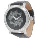 an abstract black and white zodiac tattoo design of two fish swimming in circles on a black watch