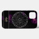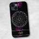 An elegant and modern zodiac iPhone case, featuring a circular astrological calendar with a deep space background and a beautiful purple nebula. The zodiac circle shows all 12 star sign symbols and constellations. An astrology themed gift that’s easy to personalize, with a space for a monogram and name to add that unique touch.