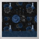 Zodiac Magic | Dark Navy Blue Gothic Skull Roses Poster