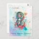 A perfect postcard to use when you have a note or greeting to send to someone you may know born under the astrological sign of Cancer. A colourful watercolor with some splashes and gold sparkles of a whimsical girl symbolic of the Crab, complete with the constellation symbol and three Cancer personality traits, Tenacious, Imaginative, Sentimental which can be personalised if you wish.