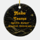 A circular ornament with your Zodiac sign illustration on one side and a name on the other side. The name you chose, name of the zodiac sign and four well known traits of that sign will be printed on the other side of the ornament.