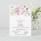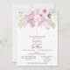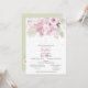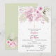 Pink and sage watercolor flowers adorn the front of this invitation. Accented with a simple hanging cross. The back of the card is sage with white dots and an additional cluster of flowers. Part of the "Zoe Collection".