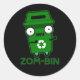 Zom-bin Funny Zombie Trash Bin Pun Dark BG Classic Round Sticker