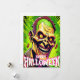 Zombie's Halloween design looks realistic and grotesque, and the green background creates a sense of menace.
