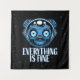 Vector cartoon illustration of a zombie astronaut with big eyes wearing a space helmet with a cracked glass shield in shades of blue with Everything Is Fine text. Tags: astronaut, cosmonaut, helmet, zombie, space, spaceman, monster, cadet, corpse, dead