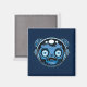 Vector cartoon illustration of a zombie astronaut with big eyes wearing a space helmet with a cracked glass shield in shades of blue. Tags: astronaut, cosmonaut, helmet, zombie, space, spaceman, monster, cadet, corpse, dead