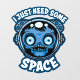 Vector cartoon illustration of a zombie astronaut with big eyes wearing a space helmet in shades of blue with I Just Need Some Space text. Tags: astronaut, cosmonaut, helmet, zombie, space, spaceman, monster, cadet, corpse, dead