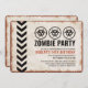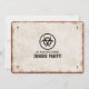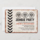 Vintage look invitation for a zombie outbreak-themed party with a weathered sign and biohazard symbols.