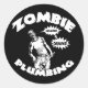Logo design for fake, non-existent plumbing company, "Zombie Plumbing." Text with b/w drawing of a zombie plumber, saying, "Drains! DRAINS!" T-shirts, novelties, gifts.