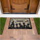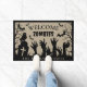 Zombie Rising Welcome Doormat: Welcome guests with a touch of Halloween fright using this Rustic Halloween Welcome Doormat. Featuring the eerie message "Welcome Zombies" in a wicked whimsical font, this design sets a haunting tone. The doormat showcases a spooky cemetery scene with a gravestone, complete with a sinister owl perched atop, and creepy zombie hands reaching from the ground. Scary trees loom in the background, with bats flying ominously around. This doormat can also be personalized with your family name, making it a unique, spine-chilling addition to your Halloween décor. Perfect for adding a festive yet eerie vibe to your doorstep, this mat is ideal for those who love the darker side of the holiday.