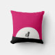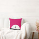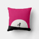 A pillow with a cool zombie creature. Pink and black bold vibrant colour scheme. A zombie silhouette with arms outstretched on the hunt for brains. A big white moon illuminates from behind.