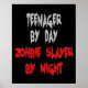 This eerie text design featuring the quote "Teenager by Day Zombie Slayer by Night" in blood red writing, is perfect for any teenager that loves zombies.