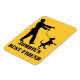 What ever happens to all the pets after a zombie apocalypse, well they follow their zombie masters of course. Fun large magnet done in yellow, with a black silhouette of a zombie leading his zombie dog on a leash. Bold black text, at the bottom reads, Zombie's Best Friend. Personalize the text to read anything you want.