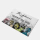Add a spooky touch to your entryway with this personalized doormat or welcome mat. It features a collage of zombies in a horror comic book style. This mat is ready to be personalized with your name and your own custom message.