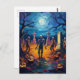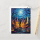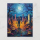 This eerie Halloween painting features a group of undead rising in a moonlit graveyard, surrounded by glowing jack-o’-lanterns, gnarled trees, and weathered tombstones. With swirling brushstrokes and vivid colour, this spooky artwork is perfect for horror fans, Halloween decor, or snail mail collectors.