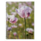 Bloemen veld met close up lila bloem, zomers natuurlijk luchtige sfeer. Een vrolijke natuurlijk uitzicht op een boerenlandschap dat vol staat met bloeiende bloemen die naar de zon gericht staan. Een geopende knop opgeheven naar de lucht. Ontluikende natuur. Ontspanning en relaxte sfeer.