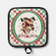 The design printed well on the oven mitt and pot holder, keeping its bold red color. It made a great gift.