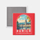 Zurich retro vector travel design. The picturesque lanes of the central Altstadt (Old Town), on either side of the Limmat River, reflect its pre-medieval history.